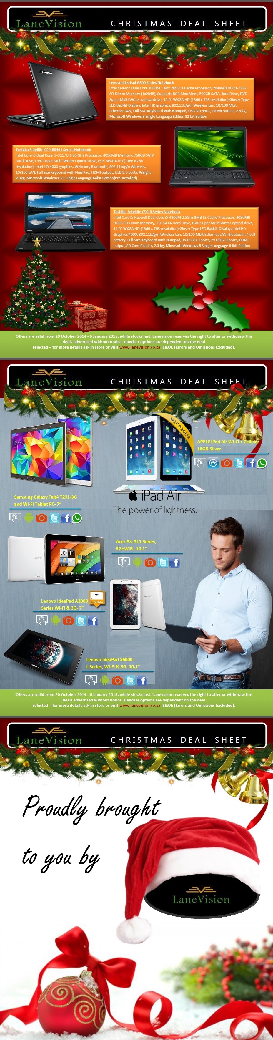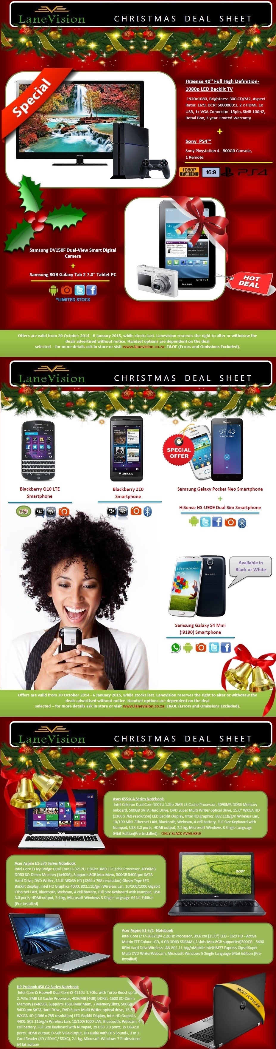 Our merchant products are associated with the brands like Vodacom, Samsung, Nokia, LG, HTC, Blackberry, Toshiba, HP, Lenovo etc. Lanevision has all current models available on great finance options. Each merchant product includes a cash portion as well should you qualify.